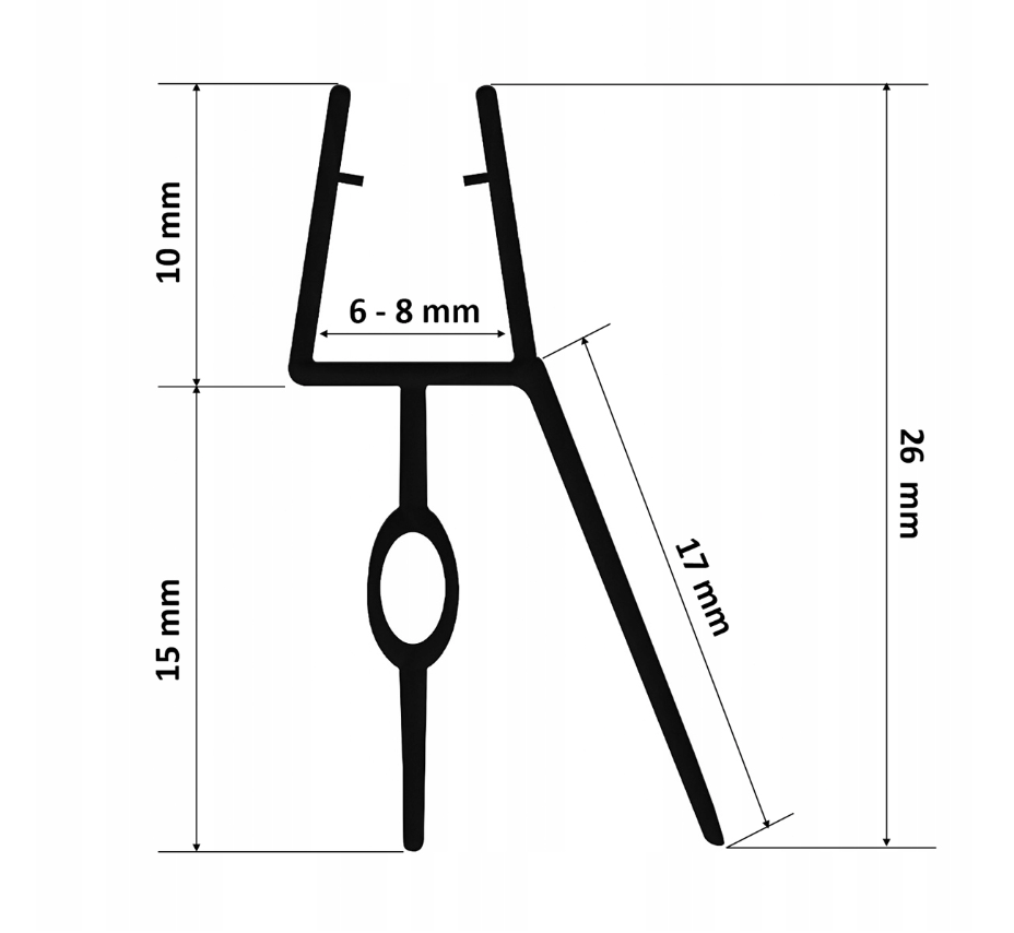 Dušo durų tarpinė juoda 6-8mm stiklui