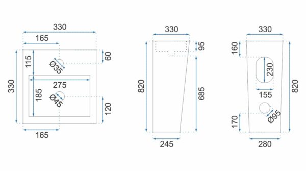 • Matmenys: 330x330x820 mm
