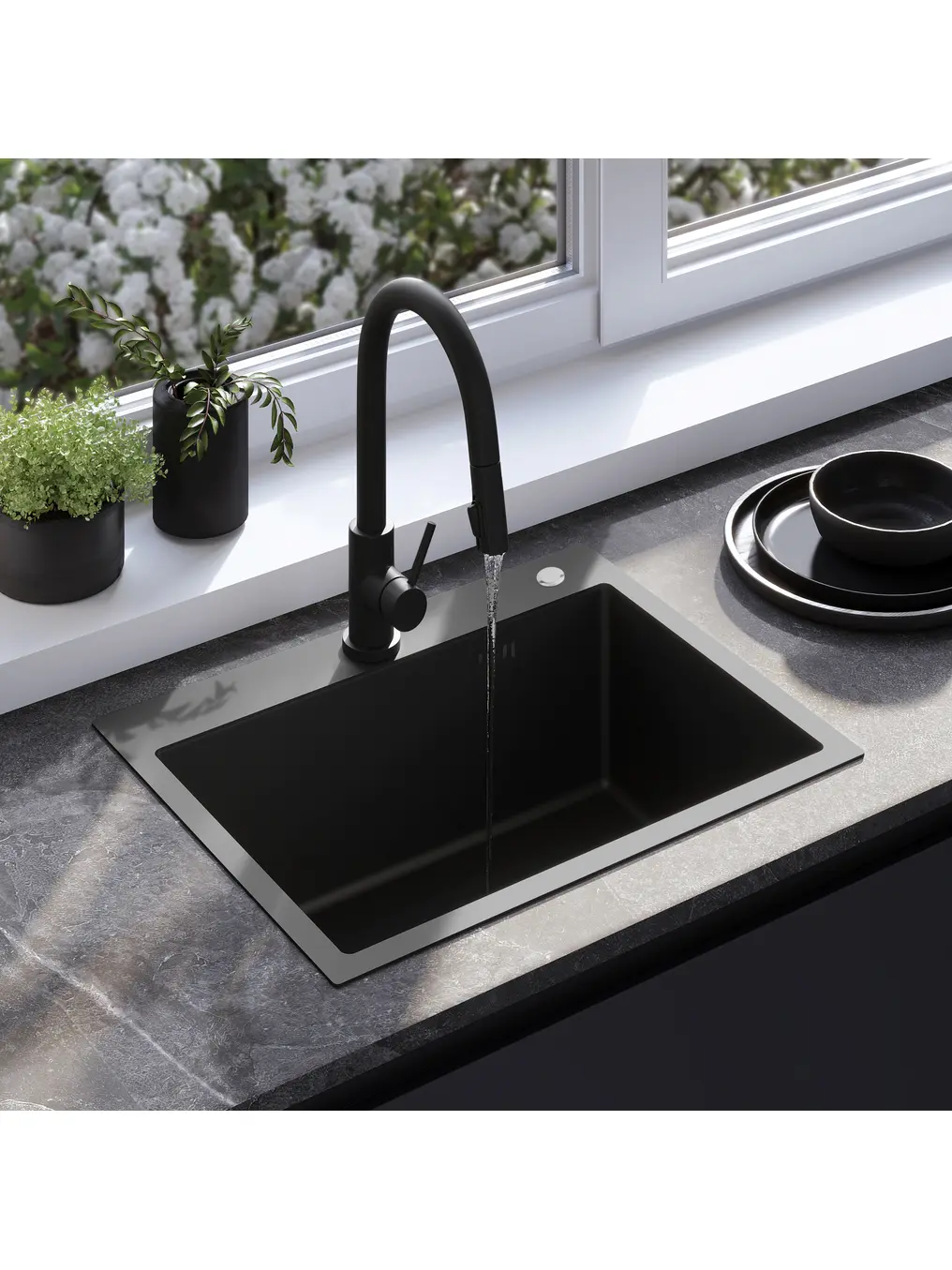 Mūsų siūloma plautuvė yra puikus pasirinkimas klientams, vertinantiems kokybę ir meistriškumą. Nesenstanti forma, aukščiausios klasės medžiagų ir technologijų naudojimas. Puikus dizainas ir naudojamų sprendimų suderinamumas užtikrina puikų galutinį rezultatą ir užpildo bet kokią virtuvės erdvę. Galimi įvairūs spalvų variantai. Į komplektą įeina: plautuvė, sifonas, išleidimo rinkinys su galimybe prijungti skalbimo mašiną arba indaplovę.