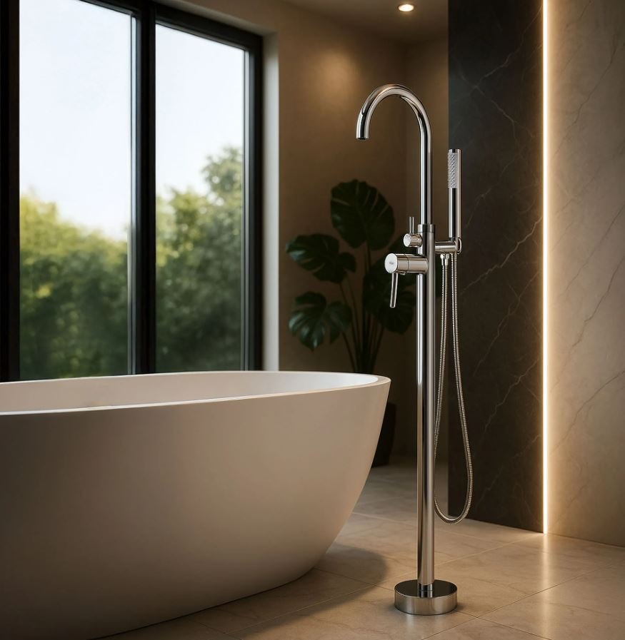 Pastatomi vonios maišytuvai yra modernus ir elegantiškas variantas kiekviename vonios kambaryje. Jie puikiai tinka didesniems vonios kambariams, atliekantys ne tik funkcinį, bet ir dekoratyvinį vaidmenį.